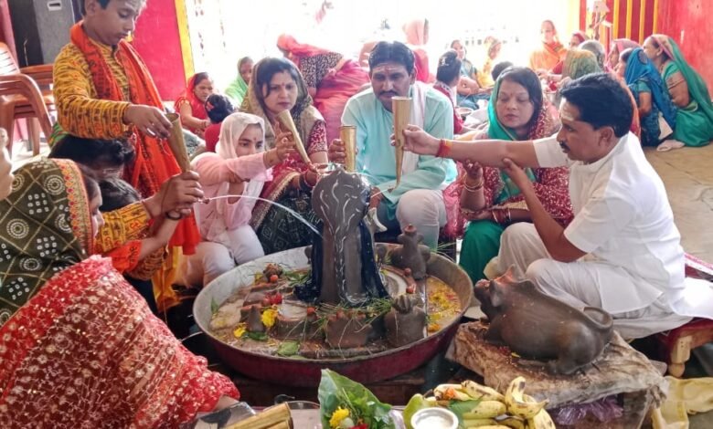 यजमान के रूप में दैवेन्द्र गीता पटैल ,( सभापति न.पा. इटारसी ),अमित दीपमाला मौर्य, अनिल सीमा भदौरिया,विवेक चरण आशा दुबे, माधव भैया ने भगवान का पूजन एवं रूद्राभिषेक किया।