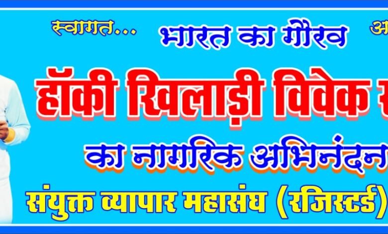 संयुक्त व्यापार महासंघ करेगा अंतरराष्ट्रीय हॉकी खिलाड़ी और ओलंपिक पदक विजेता विवेक सागर का “नागरिक अभिनंदन” कल जयस्तम चौक पर दोपहर 4:00 बजे होगा कार्यक्रम.
