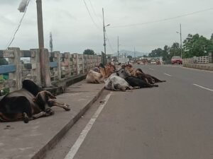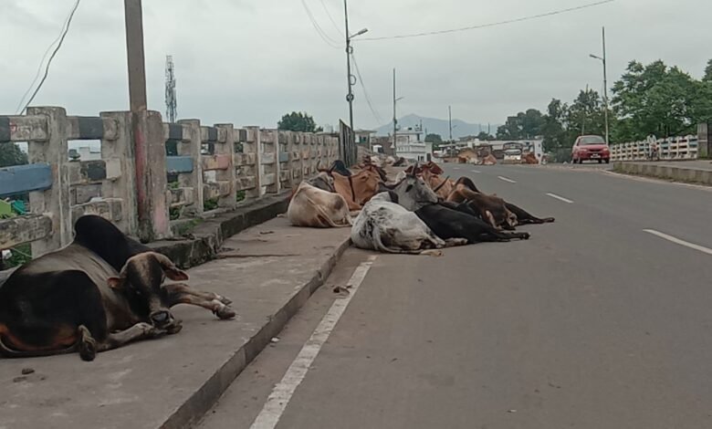 स्थानीय ओवरब्रिज पर मवेशियों का जमघट लगा हुआ है।ब्रिज की सड़क पर मवेशियों के बैठने से वाहन चालकों को आवगमन करने में भारी