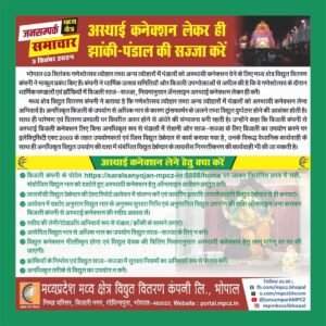 मध्य क्षेत्र विद्युत वितरण कंपनी ने बताया है कि गणेशोत्सव त्यौहार तथा अन्य त्यौहारों में पंडालों को अस्थायी कनेक्शन लेना अनिवार्य है। अनधिकृत बिजली के उपयोग से अधिक भार के कारण ट्रांसफार्मर के जलने तथा विद्युत दुर्घटना होने की आशंका होती है। साथ ही पारेषण एवं वितरण प्रणाली पर विपरीत असर होने से अंधेरे की संभावना बनी रहती है। उन्होंने कहा कि बिजली कंपनी से अस्थाई बिजली कनेक्शन लिए बिना अनधिकृत रूप से पंडालों में रोशनी और साज-सज्जा के लिए बिजली का उपयोग करने पर इलेक्ट्रिसिटी एक्ट 2003 के तहत उपयोगकर्ता एवं जिस विद्युत ठेकेदार से कार्य कराया गया है, उनके विरूद्ध वैधानिक कार्यवाही की जावेगी