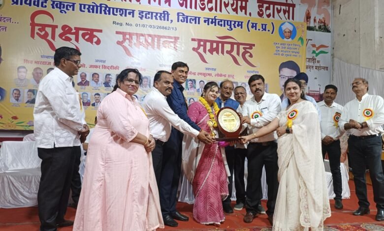 इटारसी //प्रति वर्षानुसार इस वर्ष भी प्राइवेट स्कूल एसोसिएशन द्वारा आयोजित किया जाने वाला शिक्षक सम्मान समारोह 9 सितंबर दिन सोमवार को कविवर भवानी प्रसाद मिश्र ऑडिटोरियम में आयोजित किया गया l