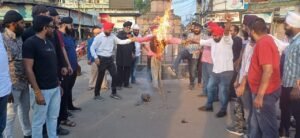 इटारसी नगर में सिख समाज के युवाओं द्वारा कांग्रेस नेता राहुल गांधी का पुतला जलाया.