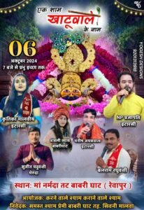 कल 6 अक्टूबर दिन रविवार को बाबरी घाट नर्मदा तट पर सजेगा बाबा श्री श्याम का भव्य दरबार,होगा बाबा श्री श्याम का भव्य संकीर्तन कार्यक्रम “एक शाम खाटू वाले के नाम”.