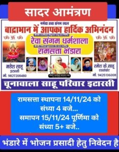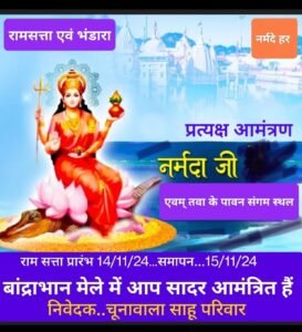 चूनावाला साहू परिवार इटारसी की एक शतक पुरानी परंपरा,बांद्राभान में रामसत्ता एवं भंडारे का होगा आयोजन,मां नर्मदा और तवा के संगम पर लाखों लोग लगाएंगे डुबकी .