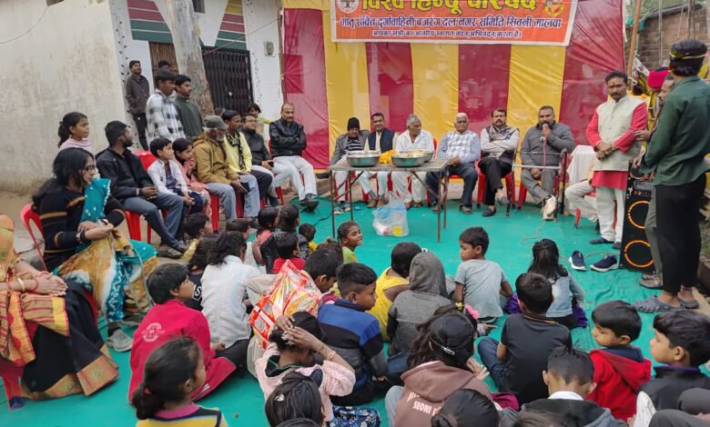 मकर सक्रांति उत्सव के अवसर पर विश्व हिंदू परिषद द्वारा स्थानीय सेवा बस्ती में जनप्रतिनिधि समाजसेवियों की उपस्थिति में सेवा बस्ती के बच्चों को तिल गुड़ लड्डुओं का पतंग का वितरण कर बस्ती वासियों के बीच मनाकर दी पर्व की शुभकामनाएं ।