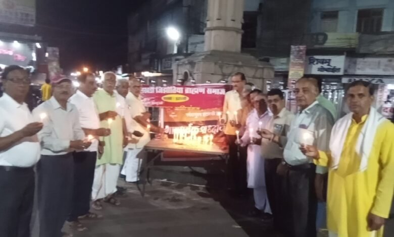 बुंदेलखंडी जिझोतिया ब्राह्मण समाज संगठन द्वारा पहलगाम आतंकी हमले में दिवंगत पर्यटकों को जयस्तम चौक पर अर्पित की गई श्रद्धांजलि.