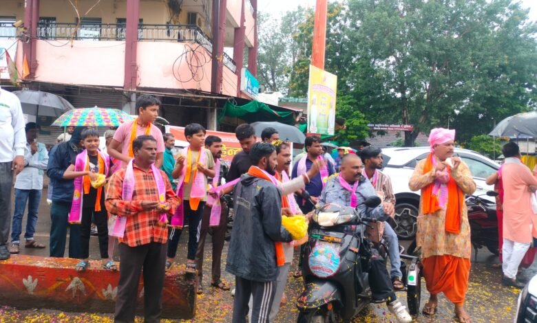 भव्य चातुर्मास सत्संग भव्य वाहन शोभायात्रा का विश्व हिंदू परिषद बजरंग दल ने किया भव्य पुष्प वर्षा स्वागत अभिनंदन ।