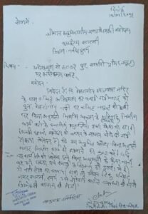मेहरागांव नदी के ऊपर अनाधिकृत रूप से नजूल की भूमि पर कब्जा कर मजार हेतु पक्का निर्माण कार्य रोकने के लिए एसडीएम को ज्ञापन सौंपा.