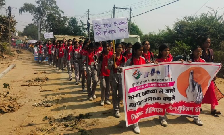 जीनियस प्लानेट स्कूल के विद्यार्थियों ने निकाली मतदाता जागरूकता रैली.