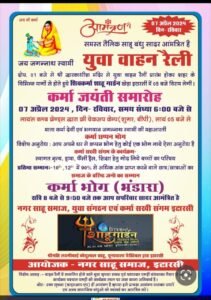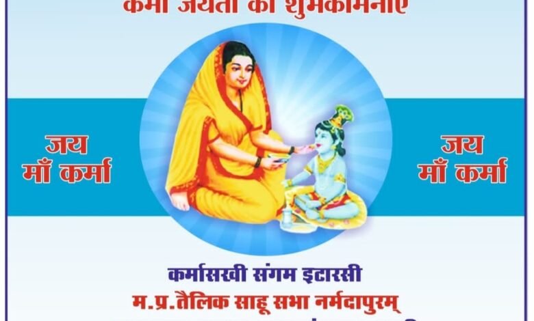 आज 7/4/24 रविवार को कर्मा जयंती (1008)समारोह के अवसर पर द्वारकाधीश मंदिर कर्मा मार्ग से 1 बजे युवा वाहन रैली निकाली जाएगी संध्या 6 बजे से मेडिकल चेक अप कैंप,कर्मा जयंती के कार्यक्रम में महा आरती,छप्पन भोग,ड्रामा,नृत्य,फैंसी ड्रेस,प्रतिभा सम्मान,बुजुर्ग सम्मान,सहित अनेकों कार्यक्रम होंगे जिनका रात्रि 10 बजे के पूर्व *कर्मा भोग* (भंडारे) के साथ समापन होगा।।.कर्मा भोग में प्रसादी ग्रहण करने हेतु आप सादर आमंत्रित है