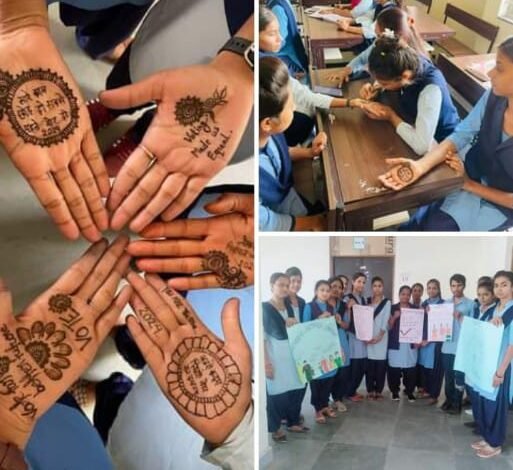 आईटीआई की छात्राओं ने मेहंदी एवं स्लोगन लेखन प्रतियोगिता के माध्यम से दिया मतदाता जागरूकता का संदेश.