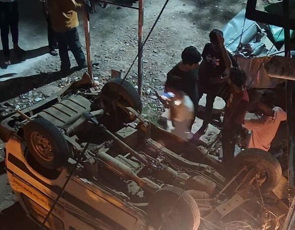 स्थानीय ओवरब्रिज के नीचे शनि मंदिर के समीप बीती रात 2 बजकर 20 मिनिट पर एप्पल ट्री स्कूल की मारुति वैन पलट गई।चालक को मामूली से चोट आई है।