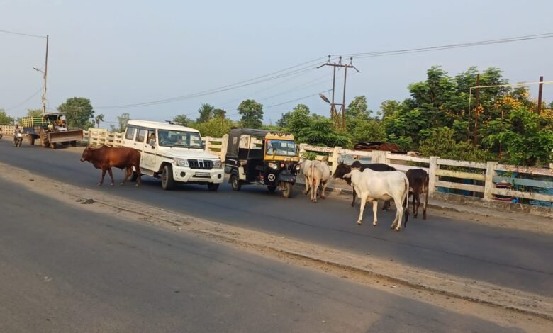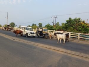 स्थानीय ओवरब्रिज पर मवेशी खड़े रहने से वाहन चालकों पर दुर्घटनाओं का खतरा बना रहता है।आप तस्वीर में देख सकते है कि,बीच सड़क पर मवेशी खड़े है,और वाहन चालक इनसे बचते हुये वाहनों को निकाल रहे है।प्रशासन को ध्यान देते हुये ब्रिज पर मवेशियों को आने से रोकना चाहिये।ताकि वाहन चालकों को दुर्घटनाओं से बचाया जा सके।