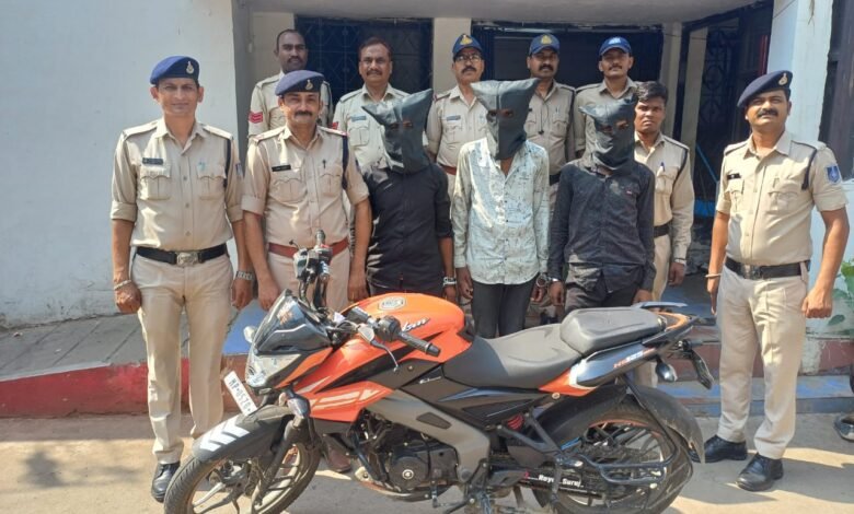 इटारसी-आनंदम होटल जिंद बाबा के समीप गत 19मई की रात्रि 11 बजकर 40 मिनिट को अज्ञात तीन लुटेरों मोटरसायकल सवार दंपति से लूट की घटना को थी।लुटेरों ने महिला के गले से 2 सोने के मंगलसूत्र,एक लेडीज पर्स एवं एक मोबाइल चाकू को नोक पर लूट लिया था।फरियादी साई मंदिर मालवीयगंज ने थाने में पत्नी के साथ आकर सिटी पुलिस को घटना की जानकारी दी।चुकी लूट का मामला बड़ा ही गभीर होता है।मामले की गभीरता को देखते हुये।और वरिष्ठ पुलिस अधिकारियों के निर्देश पर एवं एसडीओपी महेंद्र सिंह चौहान, टीआई गौरव सिंह बुंदेला के कुशल नेतृव्य में पुलिस टीम ने आरोपियो की तलाश शुरू कर दी।आरोपियों को तलाशने शिवपुर,पथरौटा एवं रामपुर पुलिस टीम इटारसी पुलिस के साथ जुट गई।मुखबिर की सूचना पर पुलिस ने आरोपियों की तलाश की ओर घटना में उपयोग हुई मोटरसायकल के जरिये पुलिस आरोपियों तक पहुँच गई।पुलिस की पूछताछ में आरोपियो ने अपना जुर्म कबूल किया।पुलिस ने इस मामले में आरोपी सूरज पिता कालूराम,कीर निवासी बुधनी,अनुज पिता भागवत केवट मालाखेड़ी नर्मदापुरम एवं गणेश पिता बुधेश गौर मालाखेड़ी को गिरफ्तार किया है।आरोपियों को गिरफ्तार करने में महत्वपूर्ण भूमिका टीआई गौरव बुंदेला,एसआई संजीव,एसआई विवेक यादव, एसआई विपिन पाल, एसआई खुमान सिंह,एसआई विशाल नागवे,एसआई के एन रजक,एएसआई संजय रघुवंशी,प्रधान आरक्षक हेमंत तिवारी,भूपेन्द्र मिश्रा,अबराल खान, नर्मदाप्रसाद,आरक्षक हरीश डिगरसे,राजेश पवांर, ब्रज नर्रे,जितेन्द्र,हेमराज,अविनाशी,भिग्गू यादव एवं सायबर सेल के आरक्षक अभिषेक,संदीप का रहा।