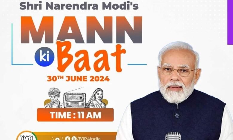देश के यशस्वी प्रधानमंत्री माननीय श्री Narendra Modi जी कल दिनाँक 30 जून 2024, प्रातः 11:00 बजे “मन की बात” कार्यक्रम के माध्यम से अपने विचार साझा करेंगे।
